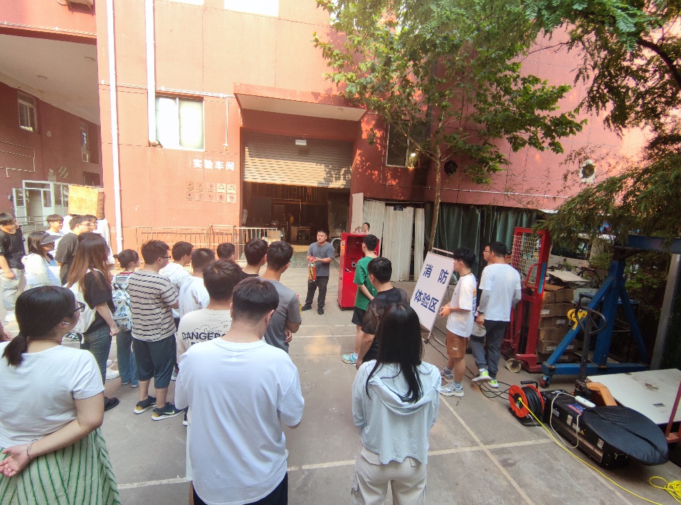 紧接着,全楼消防警报响起,楼道中烟雾弥漫,师生们纷纷捂住口鼻、躬身从楼梯往楼下撤离。短短几分钟内,师生在冶金楼大车间广场完成集合,准备观看危险废弃物泄露演习。