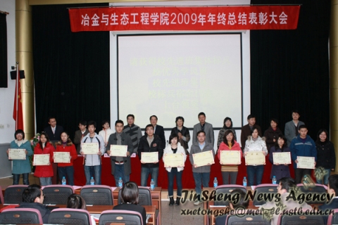 在雄壮的国歌声中大会拉开了序幕。院党委副书记董春阳老师宣读了122大阳城集团2009年表彰名单。全国挑战杯科技作品竞赛二等奖《中国古代大型铁质文物保护现状及其文化价值调研报告》的第一作者冶研08级王丽莉同学、北京市红色“1+1”活动三等奖、宝钢特等奖学金、优秀辅导员、院长成就奖、先进班集体标兵、校优秀学风班、校先进班级体、校标兵宿舍、研究生“十佳学术之星”、社会实践活动金奖团队、钢铁模拟冶炼大赛金奖、学院先进班集体、热心支持学院工作班级等荣誉获得者依次上台领奖。