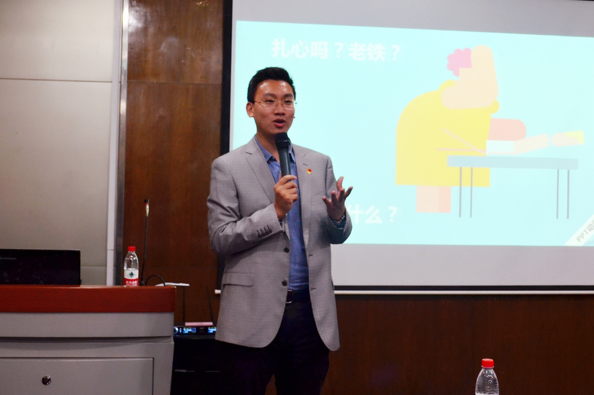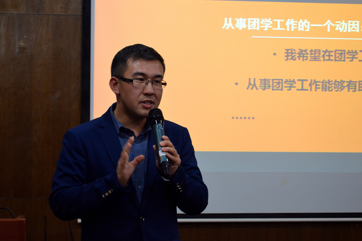 最后是学院研工组组长、就业指导教师陈曦老师讲解团学工作与职业生涯规划。作为就业指导老师,陈曦老师的讲解侧重在团学工作与职业生涯的关系上,他结合相关的数据指出团学工作对以后工作的重要性,从职业兴趣、职业能力、职业素质三个方面入手,告诉学员要体验热爱并把握机会,鼓励学员重视团学工作,努力培养自身能力。