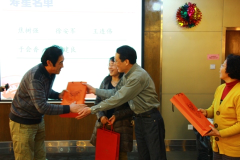 联欢会在《千年等一回》的音乐中拉开帷幕,宣告着蛇年新春联欢会的开始。院党委书记宋波教授首先祝新春贺词,感谢学院广大教师的辛勤努力,共同祝贺我院2012年在各个方面做出的丰硕成果。根据我院传统,党委书记宋波教授为生肖属蛇的教师赠送了生日礼物,并由寿星点燃生日蜡烛,高唱生日快乐歌,一片喜气洋洋。院工会主席王新东教授发表新春感言,感谢2012年中积极参加工会工作和活动的教师们。