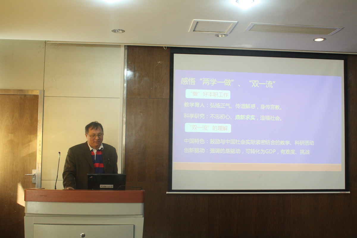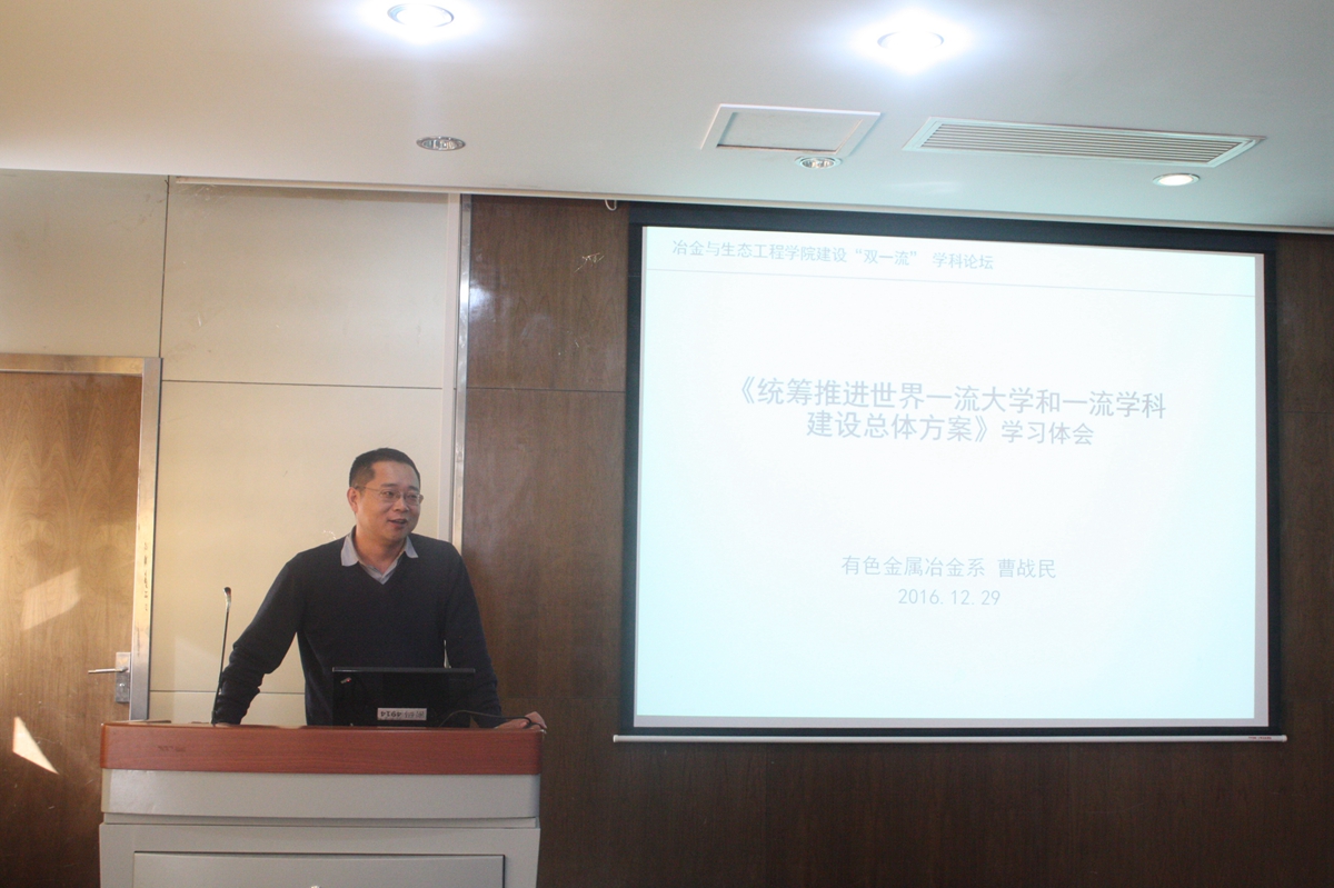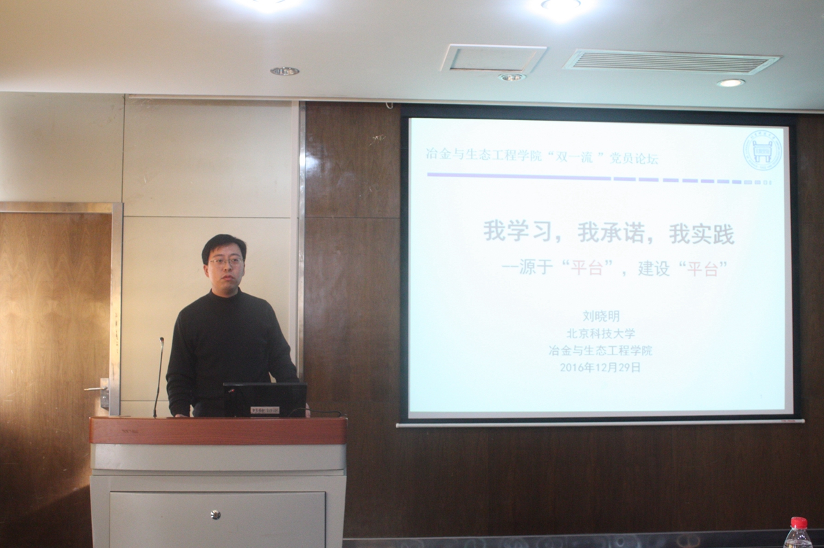 随后,科研教学系列教师代表发言。首先,刘征建老师提出,青年教师应加强自身教学科研素质提高,做好学院教学的“接力”工作,多向经验教师学习,为学院教学工作建设奉献力量。闫柏军老师从冶金物理化学的历史渊源谈到现阶段冶金物理化学学科的发展,同时,对于冶金物理化学前沿所面临的一些挑战提出了自己的建议。曹战民老师指出,为推进世界一流大学和一流学科建设,各位教职工应该多加强自身的理论学习和科学研究。朱荣老师指出,在“两学一做”中,教师要做好自己的教学科研的本职工作,不仅要教学,更要育人。在科研工作中,充分发扬“求实鼎新”的校训精神,做到不忘初心,造福社会。在双一流建设中,要把握中国特色和创新精神,推动我校与国际学校的接轨。刘晓明老师最后指出,办好高校,必须牢牢抓住全面提高人才培养能力的核心点,学院应加强对学生的关心和培养,争取更好的发展。