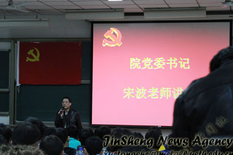 2011年3月25日晚七点,我校第166期学生业余党校入党积极分子培训班开学典礼暨第一讲于逸夫楼107教室准时召开。122大阳城集团党委书记宋波、党委副书记王春义、马列主义学院左鹏教授、2010级本科生辅导员李萌出席了会议,122大阳城集团团委常务副书记尹传举参加并主持会议,本、硕、博入党积极分子参加了会议。本次培训班旨在提高入党积极分子对党的认识,端正其入党动机。
