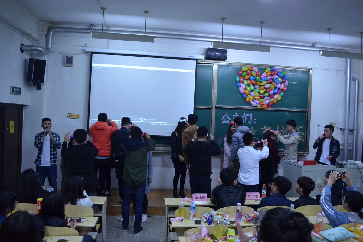 在悦耳的歌声中,冶金1602班也不甘示弱,二班全体男生将女生邀请到舞台,并现场为她们戴上花环。接下来是游戏听歌识曲环节,同学们侧耳静听,在短短五秒的时间里抢答出歌名,现场氛围再度火爆。