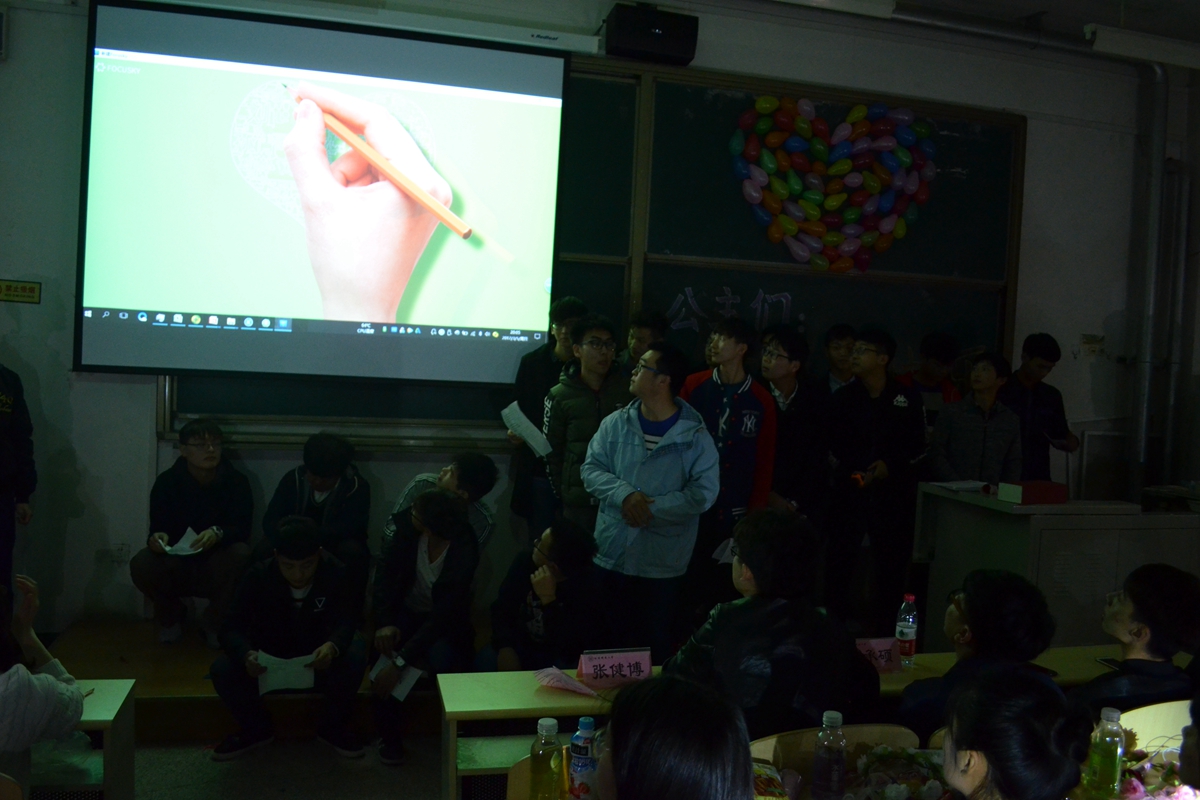 冶金1605班用一种近乎告白的方式表达了五班全体男生对女生们的关爱与呵护;冶金1606班则在由全班男生用队列摆出了班内女生们的姓氏,创意独特。在晚会临近结尾,辅导员张健博老师送上蛋糕,给女生们带来最后的惊喜,他说他要像骑士一样,去保护他的公主们找到自己的王子。