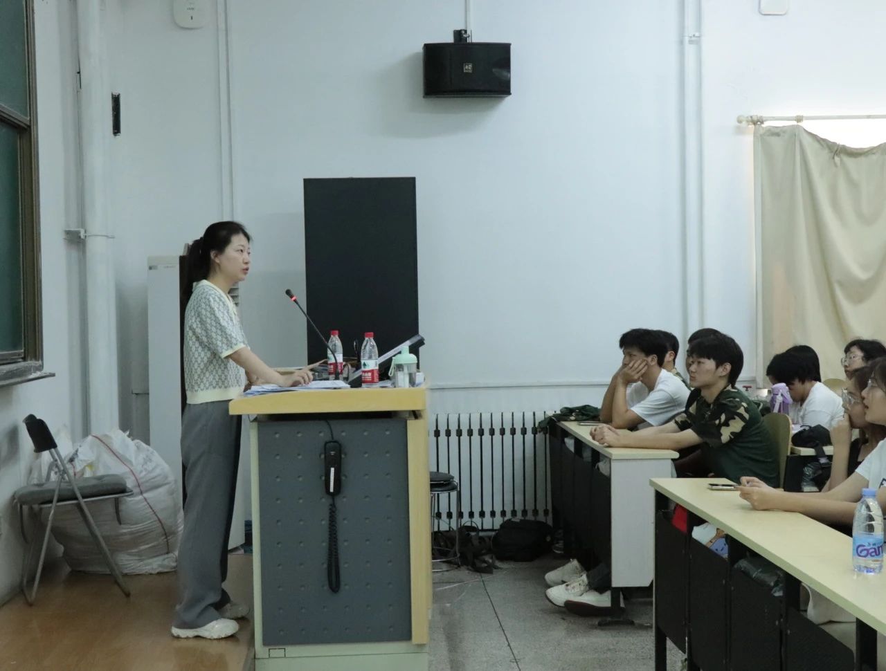 随后,辅导员韩沐妍介绍了自己,班主任、小班主任、临时负责人。就学业基本要求、日常生活规范、军训要求等方面向同学们进行了介绍。最后她表示,希望同学们大学四年能积极奋进,努力提升自己,遵守校园规则。