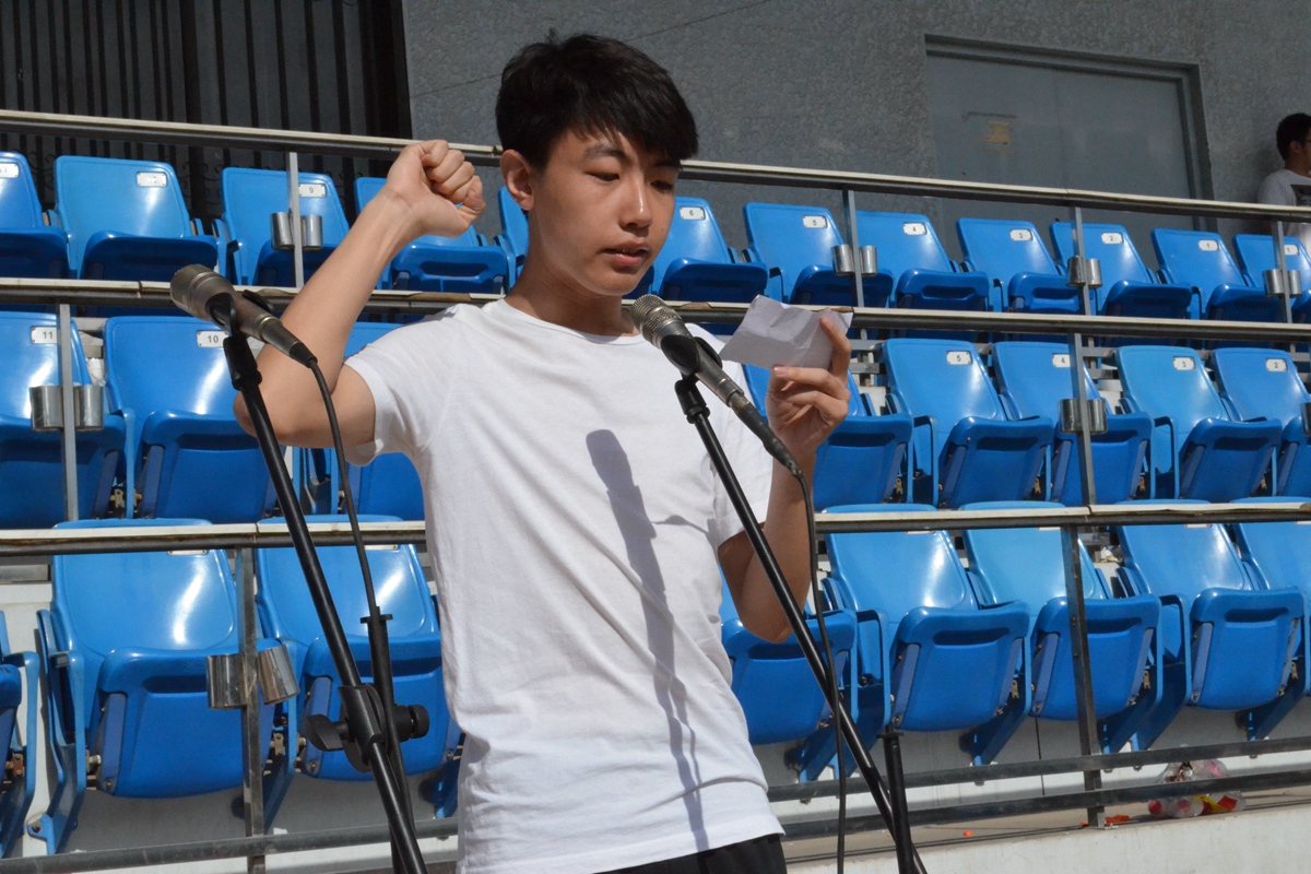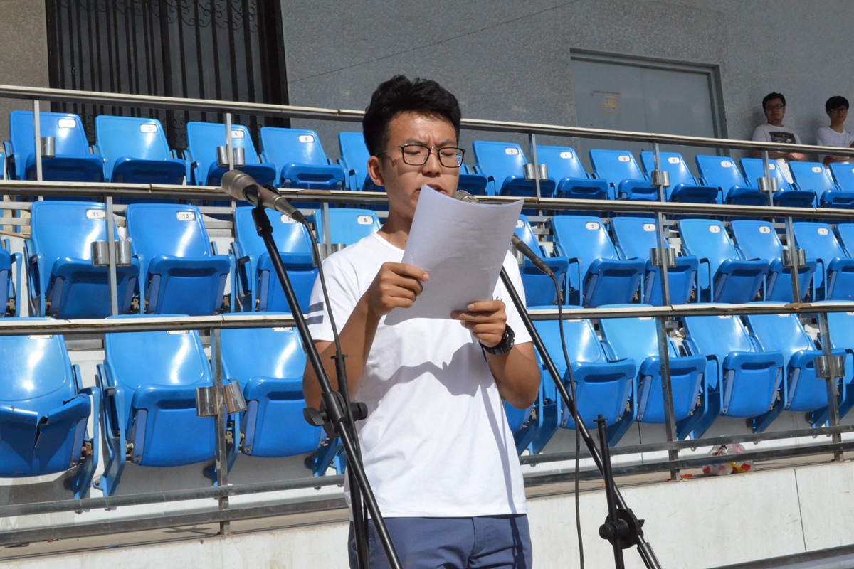王斌老师进行总结发言,他首先对全体运动员的精彩表现提出了赞扬。在各项赛事中他看到了冶金学子的拼搏精神。嘉年华的展示及表演形式也丰富多样,创意无穷。他被各个班级的团结协作深深触动,同时他希望明年的田径场依旧可以看到各位同学的积极参与,希望本科14级的学生们能够像今日一般在运动场上洒下拼搏的汗水。