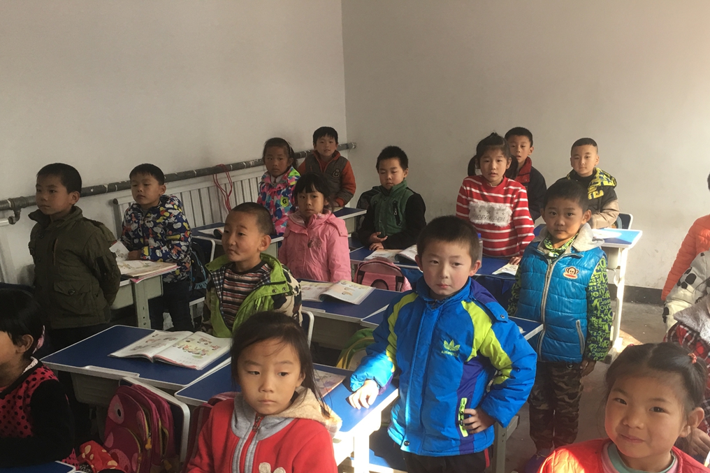 志愿者们负责的是一年级的两个班。课前的操场上不少小同学都热情的对志愿者们喊着老师好,不由得让志愿者们内心一暖。