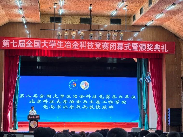 宗燕兵在会旗交接仪式上作表态发言,他对大赛组委会、承办单位江西理工大学的精心组织及评审专家的辛勤工作表达了感谢,并欢迎各兄弟高校2025年到122cc太阳成集团参加第八届赛事。他讲到旗帜是使命、旗帜是担当,122cc太阳成集团接旗意味着接过了赛事承办权,更是接过了大家的信任,接过了发展好事业的沉甸甸的责任。宗燕兵强调,122cc太阳成集团冶金学科将在 “学风严谨、崇尚实践“的优良传统及求实鼎新的校训激励下,继承和发扬好以往各届竞赛的宝贵经验,以更加开放的姿态,更加严谨的态度,更加奉献的精神,积极筹赛,用心用情用力全力为赛,扎实做好作品的广泛征集、赛事的精心组织,扩大影响力,提升获益面,挖掘创新点,力争把新一届赛事办成公平公正、规范有序、创新服务、团结向上的竞赛平台,力争把新一届赛事办成青年学子碰撞智慧、展示才华、实现梦想的标志性赛事,力争把新一届赛事办成促进冶金学科发展和冶金学子提升的促学、促教、促创的高质盛会!
