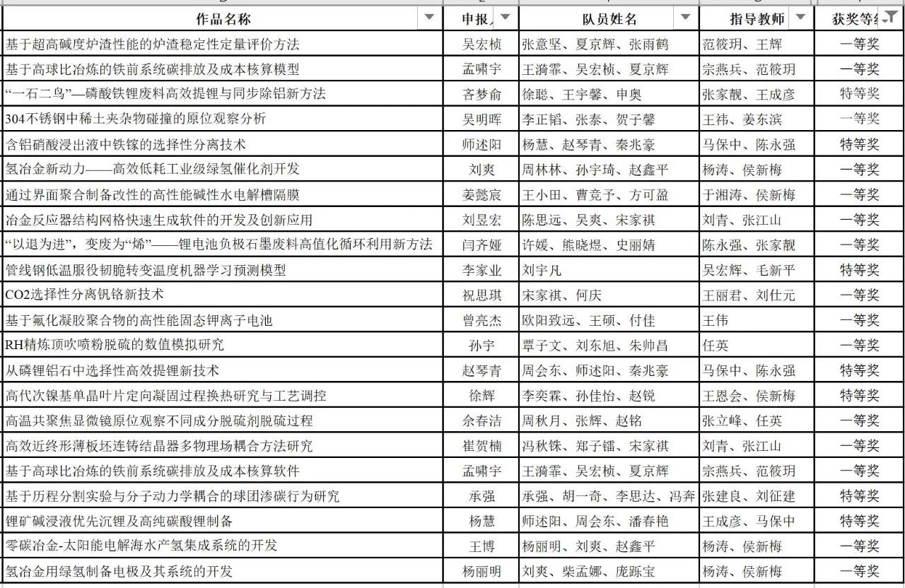 本届全国大学生冶金科技竞赛由教育部高等学校材料类专业教学指导委员会指导,中国金属学会主办,江西理工大学承办。大赛主题是“智能、绿色、新质、循环”,分为创意设计、科技创新和仿真实训三个单元。自4月份发布通知以来,共收到参赛作品2112件。我校冶金学科本科生和硕博研究生积极参赛,发挥出色,再创佳绩,最终斩获创意设计和科技竞赛特等奖7项,一等奖15项,二等奖22项,三等奖35项;在仿真实训竞赛中获特等奖1项,一等奖1项、三等奖2项;122cc太阳成集团获优秀组织奖单位。