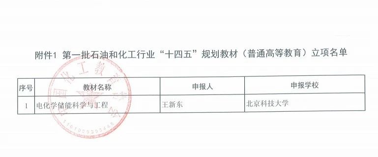 在中国化工教育学会公布的第一批石油和化工行业“十四五”规划教材(普通高等教育)立项名单中,由我院王新东教授主持申报的《电化学储能科学与工程》获批立项。