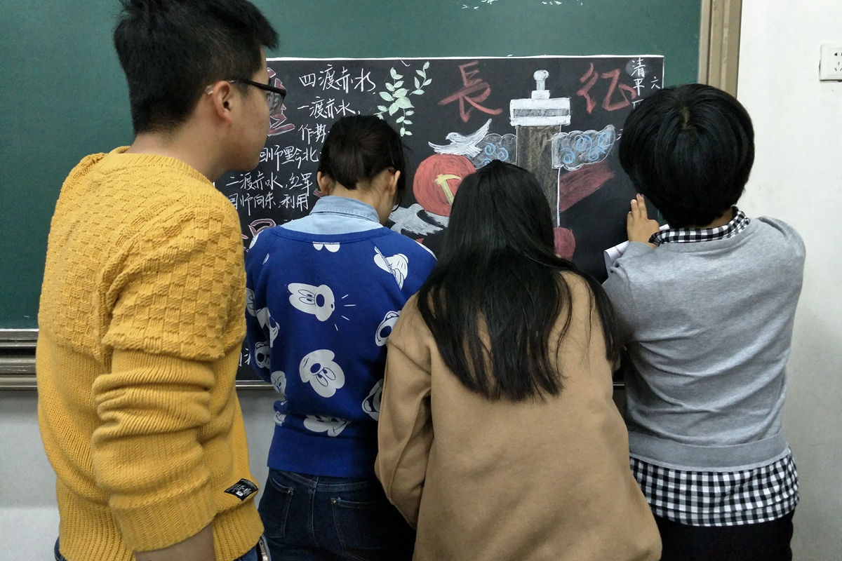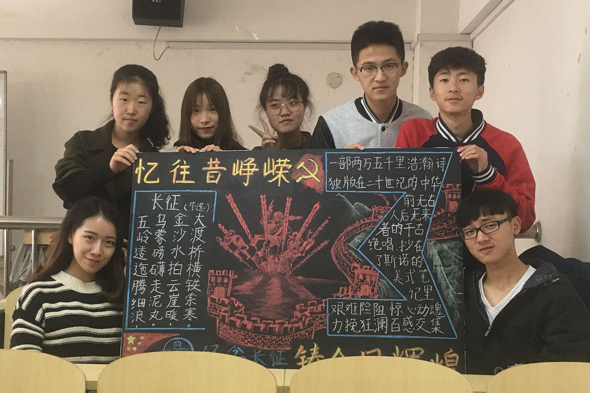 10月23日上午,为集中开展长征精神学习教育,引导学生思考长征精神的深刻内涵,思考当代需要怎样的“长征精神”,122大阳城集团于冶金楼110举行“激活红色基因,共绘不朽丰碑”专题黑板报绘制活动。