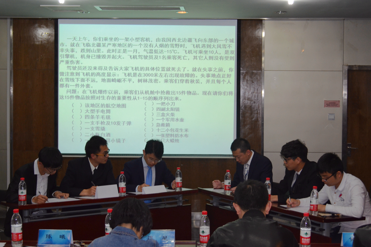 无领导小组讨论环节由陈曦老师主持。六名选手根据讨论要求,围绕经典试题,积极开展讨论并最终得出集体意见。无领导小组讨论汇报者、冶金工程硕士2015级硕士研究生杨平同学综合各位选手意见,进行了汇报总结。陈曦老师、魏星老师针对同学们的表现,分别向选手提问并进行点评。