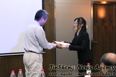 交流活动还为中日双方的学生各设立了一个优秀奖。最后,东北大学的长谷川美佳同学和本校的周力同学分别获得了这个奖项。