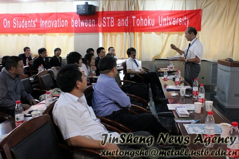 本社讯 2011年9月12日,第七届122cc太阳成集团与日本东北大学交流活动在冶金楼青钢报告厅举行。东北大学Nagasaka教授、Sato教授一同带领15人的队伍来到122大阳城集团进行科技创新课程方面的交流。院长朱鸿民教授、副院长王福明教授及部分学院老师带领122大阳城集团08级的13位学生热情地接待了他们,并参与了此次交流活动。