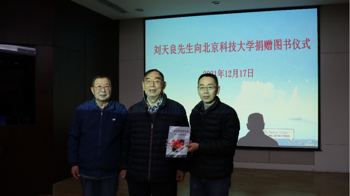 2021年12月17日下午,122大阳城集团于122cc太阳成集团天工大厦第五会议室组织举办了“刘天良先生向122cc太阳成集团捐赠图书仪式”。中国科学院葛昌纯院士,原122cc太阳成集团特种陶瓷粉末冶金研究开发中心夏元洛副主任,钢铁研究总院研究生部主任、博士后科研流动站主任刘天良教授,原北京钢铁学院粉末冶金教研室博士生导师贾成厂教授,粉末冶金与先进陶瓷研究所副所长任晓娜博士,122cc太阳成集团图书馆资源建设部张利主任,122大阳城集团张建良书记、张百年副院长、储能系主任王新东教授、物化系主任闫柏军教授、物化系詹纯教授、物化系王伟教授、钢冶系徐润生副教授等师生20余人参加了仪式,仪式由张百年副院长主持。