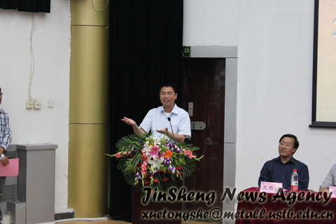 王福明副院长随后也和同学们进行了交流。他说30年前的今天也是他入学的日子,并且亲切地以学长的身份告诉学弟学妹们要树大志,提高自我管理意识,尽快适应以学习为主旋律的大学生活。钢铁冶金系主任成国光教授则代表学院的老师表达了对11届学生的殷切希望。他从不同的角度来让同学们明白大学里应该做些什么。而他对冶金行业未来前景的分析则带动了在场每一位同学的豪情。“只有踏踏实实学习、掌握好一技之长,才能有更好的发展,同时也要做好迎接各种困难的准备,要成为全面发展的适应社会的大学生。”成教授的话语被同学们所铭记。