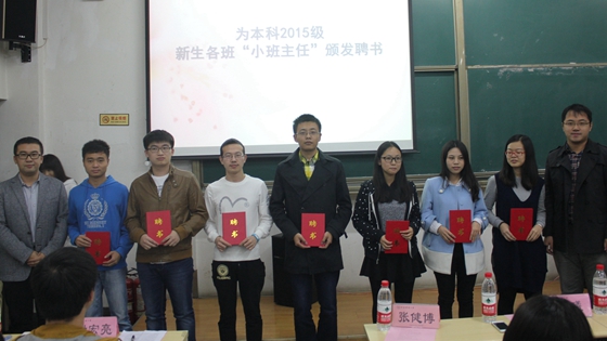 活动中,本科2015级辅导员陈曦老师介绍了新生年级教育工作方案的主要内容,要求新生同学们在朋辈教育中尊重学长、尊重经验,虚心请教、虚心聆听,重视行动、落实行动。学院团委书记杨志伟老师对活动进行总结。杨志伟老师肯定了本科2015级新生同学们对大学生活的理解,要求新生同学们重视个人体验、重视学业发展并祝福新生同学们拥有丰富精彩的大学生活。活动开始前,杨志伟老师和陈曦老师还为学院本科2015级新生班级“小班主任”颁发聘书。