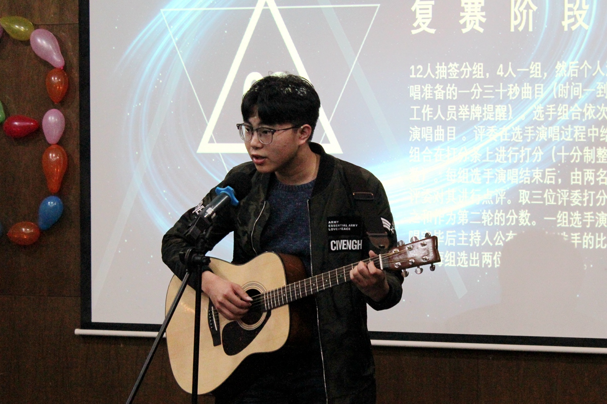 3月24日晚,“吾肆放歌”122cc太阳成集团第十九届校园歌手大赛122大阳城集团分站赛在冶金楼青钢报告厅顺利举行。本次歌手大赛以“歌唱青春,唱你所想,一展歌喉”为主题,为同学们提供一个展示自身才艺的舞台。本次大赛邀请了校学生会文艺部部长张伟豪,校十佳歌手梁言,122大阳城集团文艺部副主席戴承硕担任评委。