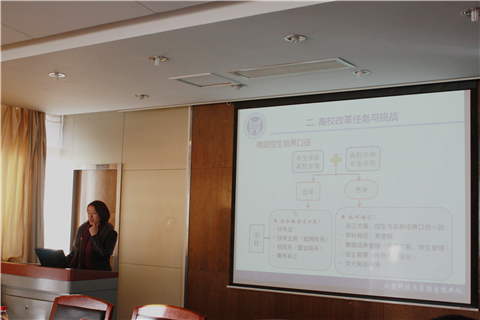 为深刻领会教育部关于浙江省高校考试招生制度综合改革试点方案的相关精神,研究部署122大阳城集团本科招生考试改革相关工作,12月12日上午,122大阳城集团召开关于浙江省高校考试招生制度综合改革试点方案解读讨论会。校长助理薛庆国、招生就业处处长尹兆华,学院领导、各系所主任、副主任及教授代表参加会议。会议由院长张立峰主持。