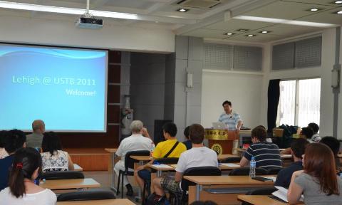 6月20日下午,“122cc太阳成集团-美国理海大学夏令营”(Lehigh at USTB―Summer 2011)开营典礼在国际合作与交流处多功能厅隆重举行。国际处郭侃俊副处长,冶金与材料史研究所梅建军所长,我校科技史、生态学、工业设计各专业的师生及理海大学代表团成员共三十余人出席了典礼。