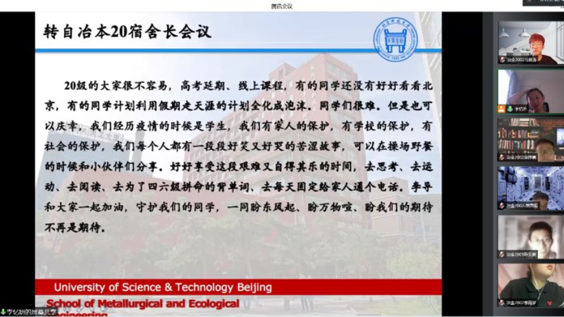 5月19日上午,冶金党委线上召开全体教职工大会,张百年、王春义、焦丽君就近期上级会议精神进行传达,通报目前各单位的疫情防控情况,部署相关工作。