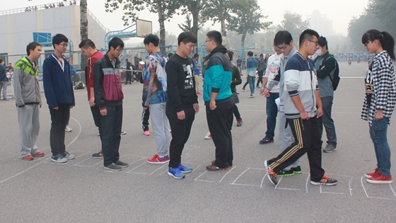 在班级集体游戏部分,新生同学们以班级为单位依次进行了“吐泡泡”、“换位”、“动感呼啦圈”、“诺亚方舟”和“趣味接力”等五个团队熔炼小游戏。活动现场气氛异常热烈,同学们摩拳擦掌、跃跃欲试。七个班级七支队伍,在场地上进行了集体智慧与团队协作的较量。“吐泡泡”、“换位”考验了新生同学们的反应与速度,“动感呼啦圈”增加了新生同学们彼此的默契程度。立体化的造型、零距离的接触,“诺亚方舟”游戏中全班齐上阵,帅气的“钢小伙”托起可爱的“铁姑娘”,力求使地面上单薄的报纸承载更多的同窗伙伴。担任活动裁判的学院团委学生会2014级学生骨干们公平执规、详细记录并为新生同学们做好安全提示和活动保障工作,发挥了学长学姐们的服务与表率作用。