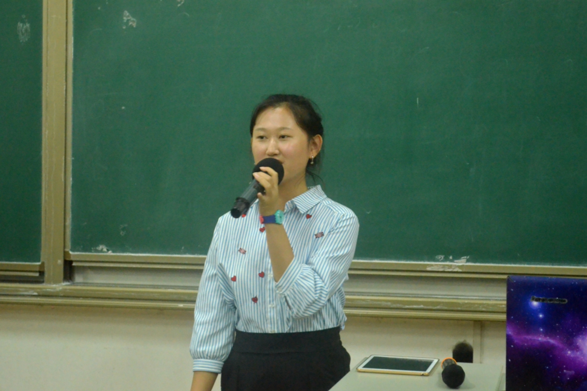 最后李忆妍同学向同学们展示了经历了三年大学生活后现在同学们的生活风貌。然后以自身经历为切入点,讲述了大学三年的一些遗憾。俱往矣,都是已经错过的青春,只能在将来弥补。李忆妍同学寄语16级新生同学们,能做的事情很多,肯努力,肯坚持,青春就能改变。
