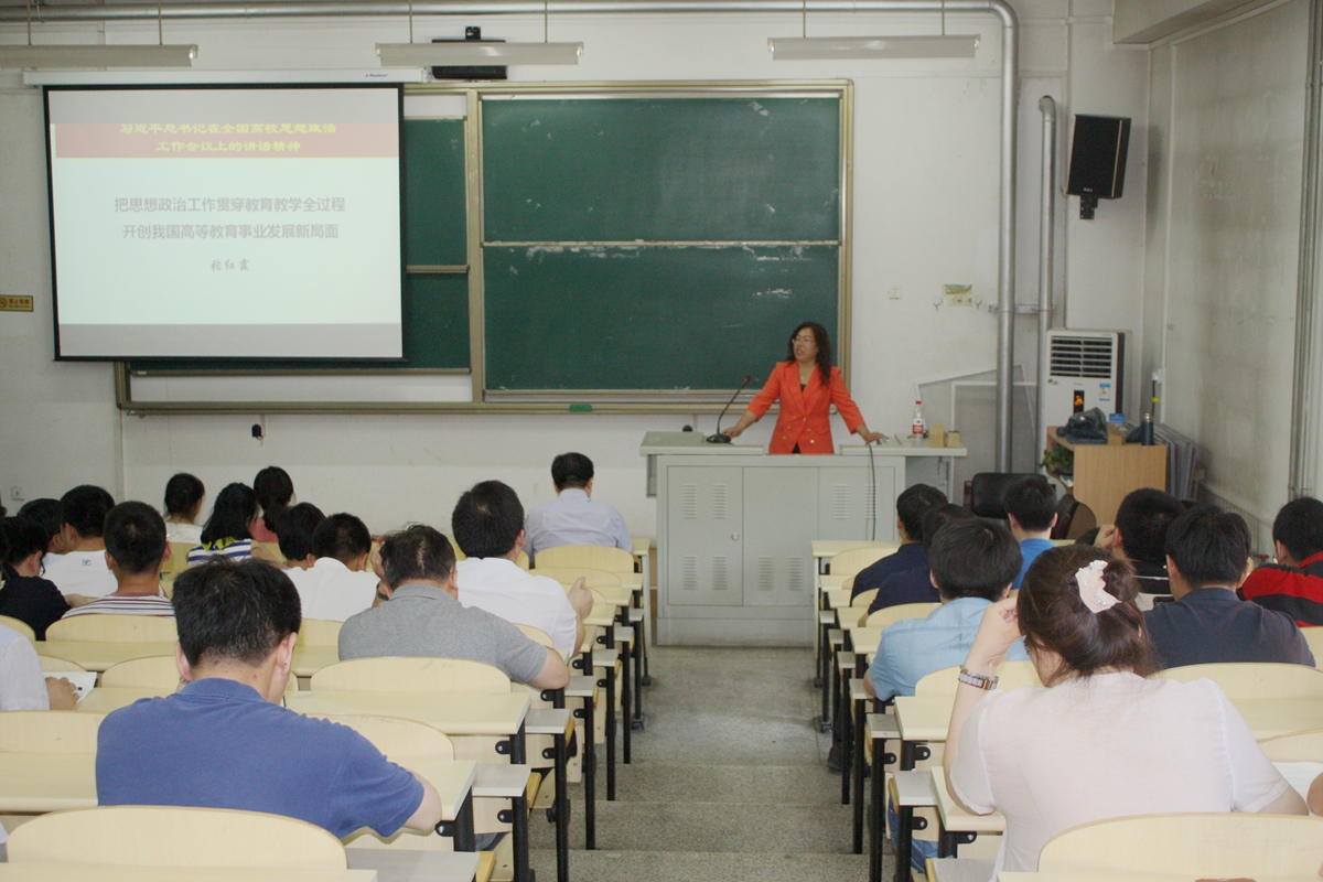 5月18日下午,122大阳城集团党委组织全体教职工党员集体学习习总书记在全国高校思想政治工作会议上的讲话,并邀请马克思主义学院思想政治教育工作专家张红霞教授作关于《思想政治工作贯穿教育教学全过程开创我国高等教育事业发展新局面》的报告。