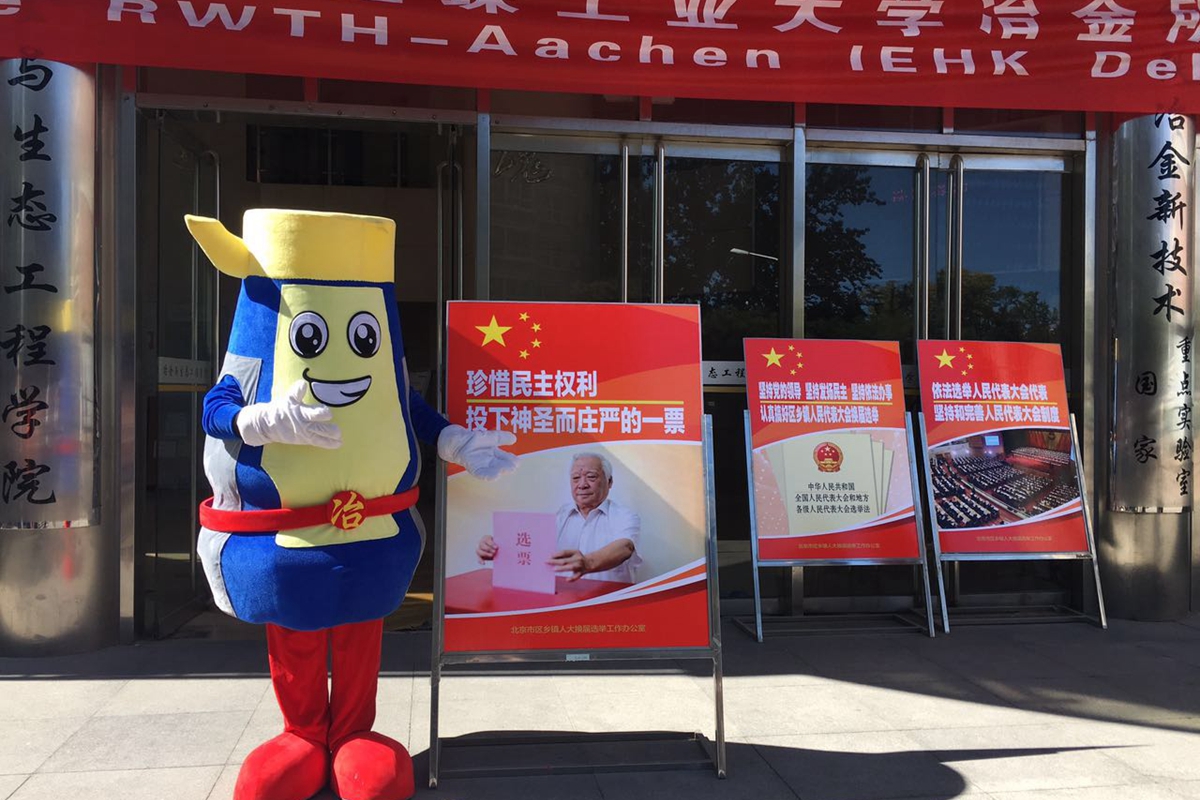2016年9月19日上午,为落实海淀区人大代表换届选举工作,122大阳城集团在冶金生态楼门前设置了宣传站点,学院机关党支部党员教师对广大师生进行了人大代表换届选举知识的普及工作。