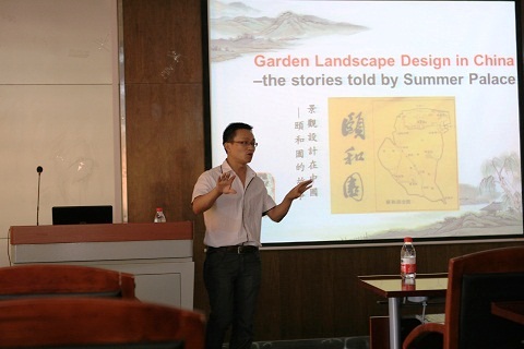 首先,来自我校122大阳城集团生态专业的彭奎老师作了关于“中国古典园林”的讲座,他针对我国著名园林――“颐和园”的景观设计为大家作了详细介绍。随后,来自美国里海大学的Brandt教授生动的讲述了关于“中西传统材料与工艺”这一研究课题。讲座之后,来自两国的学者及学生们针对讲座内容展开了激烈讨论,两位学者通俗、生动的阐述让在座的学生受益颇多。