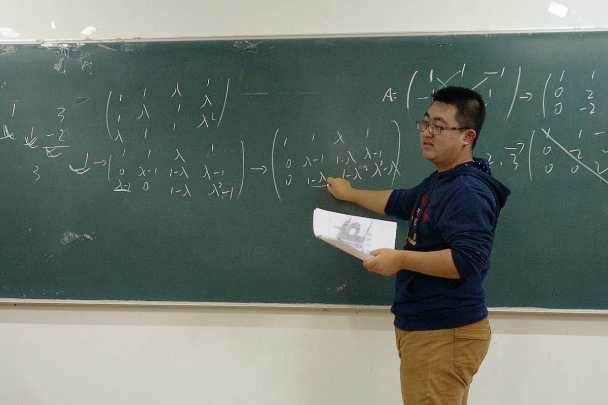 11月9日,122大阳城集团本科学业辅导正式开讲。本次学生学业辅导由122大阳城集团学业辅导中心主办、122大阳城集团团委学生会协办,面向本科一年级、二年级学生开展,主要形式为学科期中知识点梳理与疑点难点解答。首场辅导《线性代数》由本科2014级李巍同学讲授。