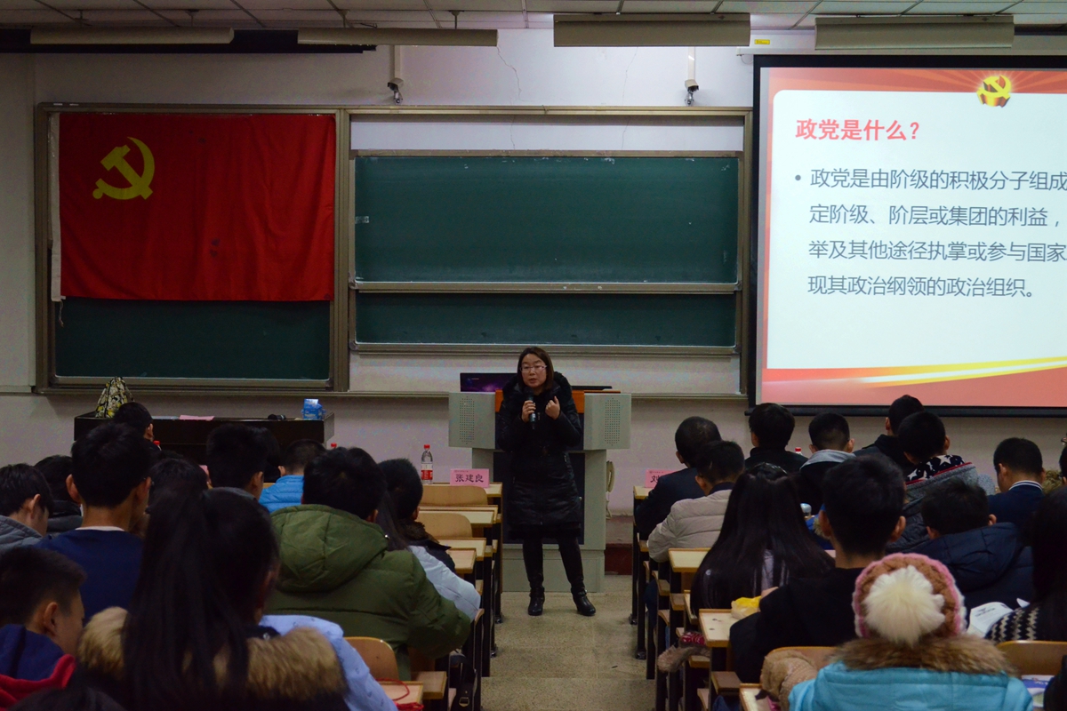 122cc太阳成集团第271期学生业余党校第一讲正式开始。马克思主义学院副院长刘丽敏老师先从当代大学生不同的入党动动机讲起,纠正了部分学子为求职、从政等现实条件的便利而选择入党错误认识,强调了端正入党动机的重要性。同时,刘丽敏老师还举出现任科学技术部部长万钢同志以及前卫生部部长陈竺同志从无党派人士到入党从政的历程,给在场学子道出了未来从政政治条件广阔的现实情况进一步纠正了同学们的错误认识。在场的同学无不纷纷点头认同,对刘丽敏老师表示认同。紧接着,刘丽敏老师从“十八大”“两会”“十一届三中全会”等基础名词与同学们进行互动,回顾了政治基础知识,进一步加深对了解中国共产党的运作架构。而后,刘丽敏老师从对党章的基本认识、党章修改历程的回顾以及修改党章的必要性、解读新党章、实践党章争做合格党员四个部分带领给在场的同学系统地学习了党的宪法――党章,强调了“纪在法先”的基本概念。刘丽敏老师谈及修改党章的必要性时说道,修改党章是党总结经验不断进步,在统一思想的前提下积极推进视野的重要举措;在解读新党章这部分,刘丽敏老师呼吁在场的老师和同学们贯彻落实中共“两学一做”的号召投身于实践中去,同时给我们解读了十八大带来的新政策和新思想。在最后,刘丽敏老师鼓励我们积极实践党章,从中国共产党以及作为一个共产党员的应然概念中,提出了我们应争做一个除了有公民使命感以及道德良性素养的“好人”,还具备党性素养以及党识的人的希冀,积极投身于拥护中国共产党的行列中去,自信自强。在刘丽敏老师的美好祝愿与同学们的热烈掌声下,122cc太阳成集团第271期学生业余党校第一讲至此结束。
