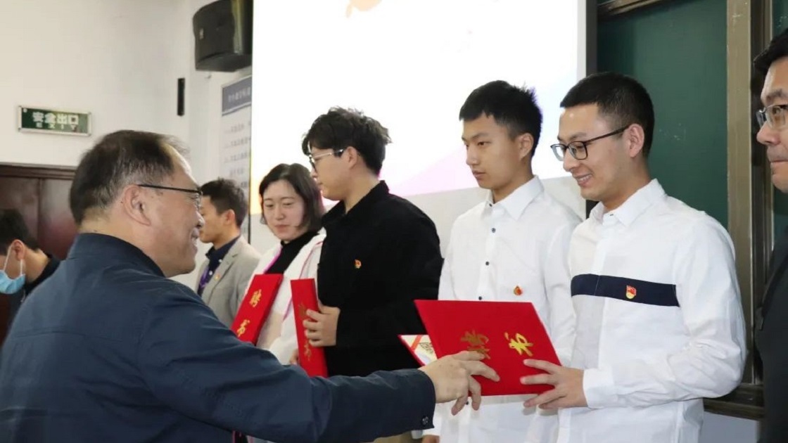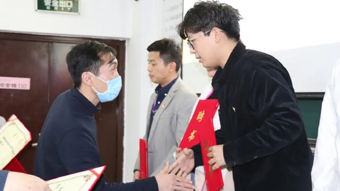 学校党史学习教育指导组四组组长史立伟、李京社为党史学习教育宣讲团代表颁发聘书。