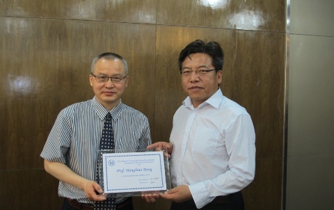 会前,我校校长张欣欣教授和老校长徐金梧教授单独接见了董洪标教授。