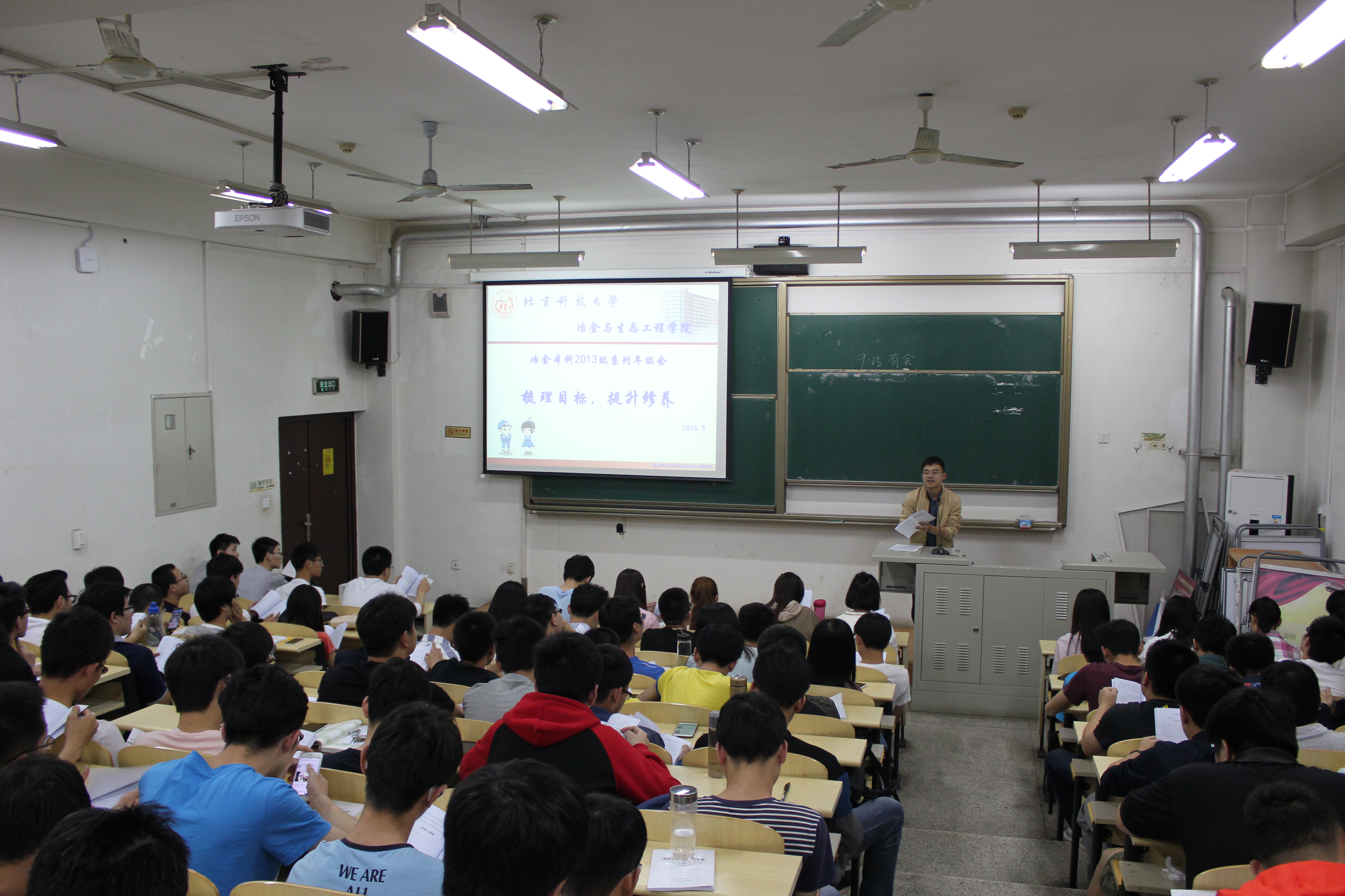 5月16日,冶本13级“梳理目标、明确规划”职业生涯辅导年级会在冶金楼110召开,由辅导员郝勇飞老师为同学们做生涯规划指导,冶本13级全体同学参加。辅导员向同学们介绍了本院往届毕业生大致的毕业去向,从保研、考研、出国、就业等四个方面,详细介绍了每个方向的毕业生情况,并分析总结了相关准备流程和注意事项,提醒同学们尽早结合个人特点,确定发展方向,做好相应准备。