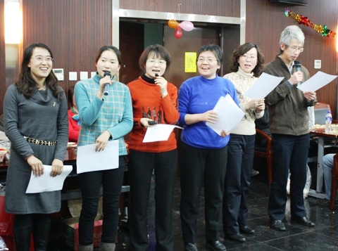 联欢会上每位老师都说出了自己的新年愿望,并与大家一起分享。之后赵世强、张瑜老师共同为大家献上了一首深情的《康定情歌》,朱骏老师带来了慷慨激昂的《精忠报国》,赢得老师们的阵阵喝彩。实验中心程瑜老师为大家带来的戏曲串烧及硕士毕业生赵婷婷的《流年》更是赢得了满场的掌声,让人印象深刻,回味无穷。学院办公室工会小组合唱的《潇洒走一回》将联欢会带入了高潮。