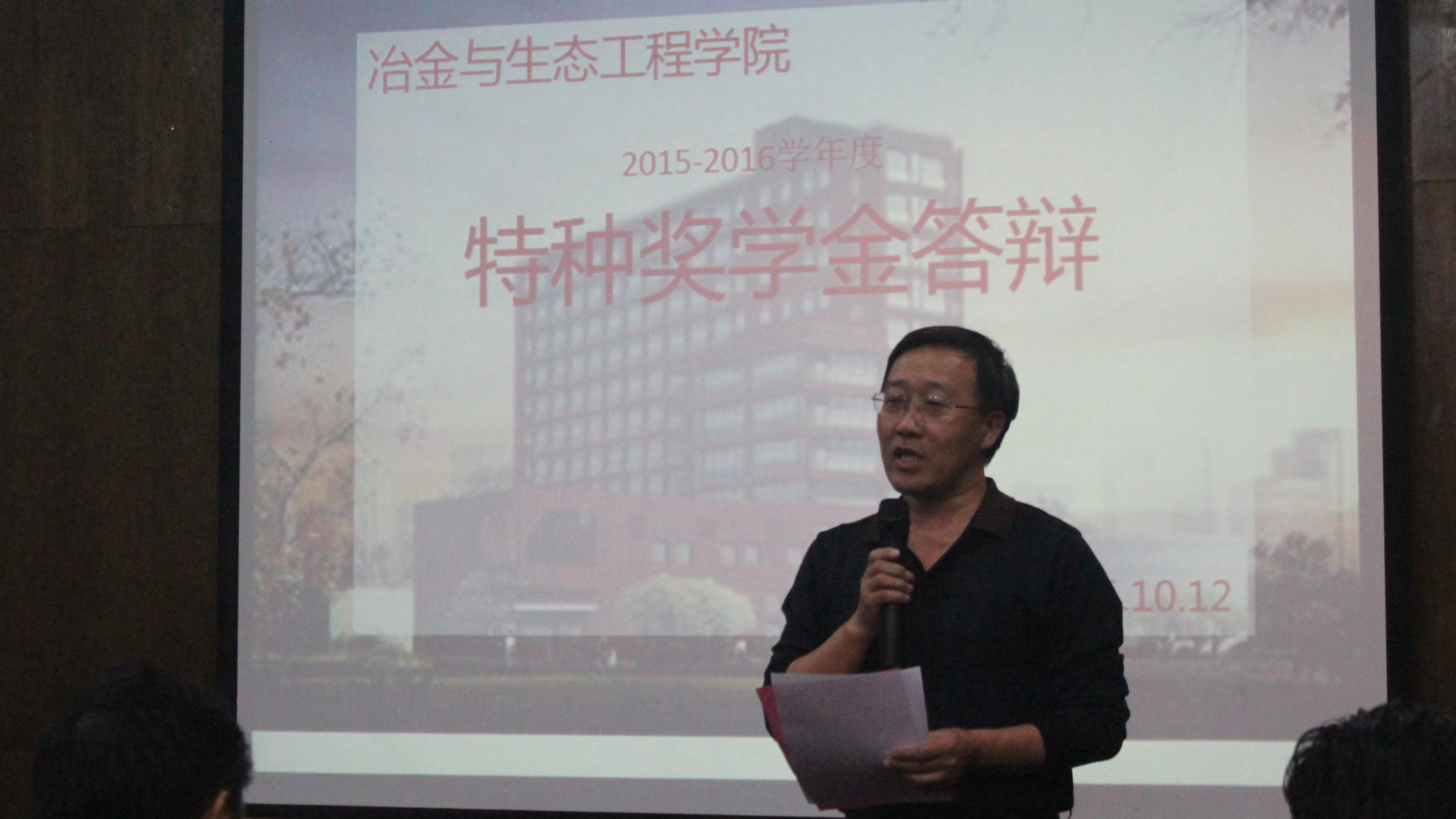 10月12日晚,122大阳城集团2014-2015学年本科生特种奖学金答辩会在冶金生态楼青钢报告厅隆重举行。来自本科2012、2013和2014级的12名优秀学子进行特种奖学金答辩。学院党委副书记兼副院长王春义老师、冶金1307班班导师马瑞新老师、冶金1407班班导师曹战民老师、钢铁冶金系王广伟老师、学院团委书记杨志伟老师及本科各年级辅导员担任答辩评委。本科2015级百余名学生现场观摩了答辩。