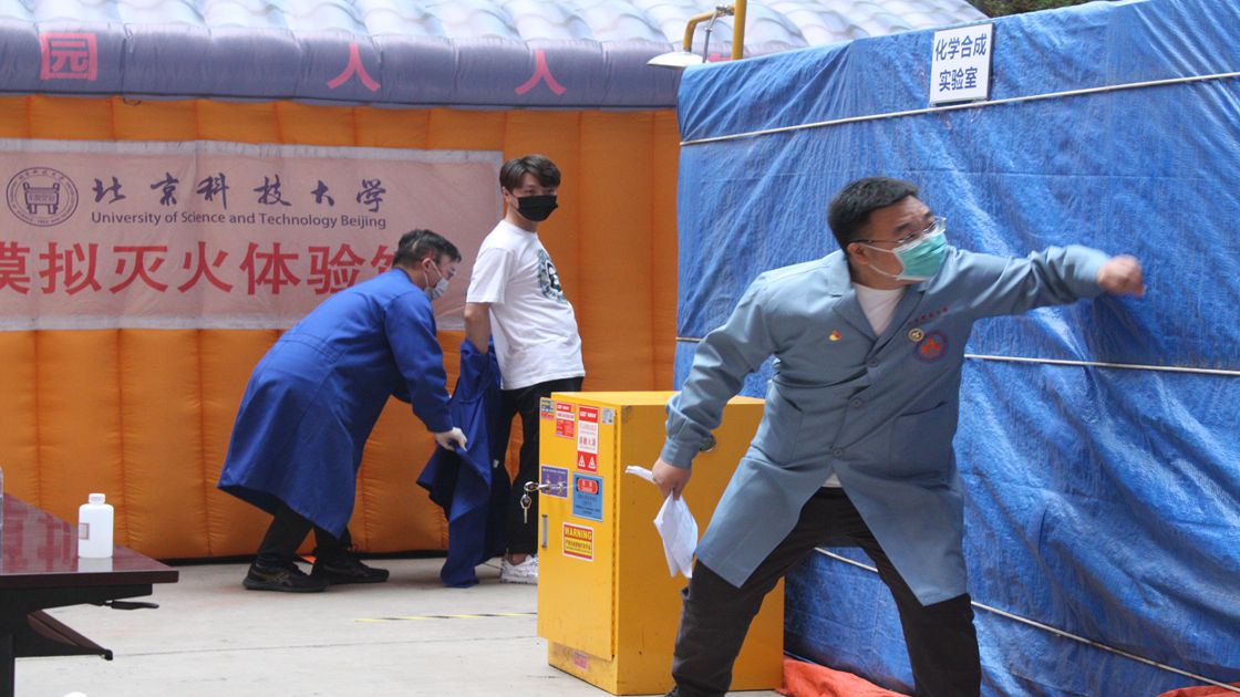 122大阳城集团、钢铁冶金新技术国家重点实验室及科技史与文化遗产研究院共计百余名师生观看了应急演习,并在模拟灭火体验馆学习灭火的要领,用灭火器进行实际操作扑灭电子火。