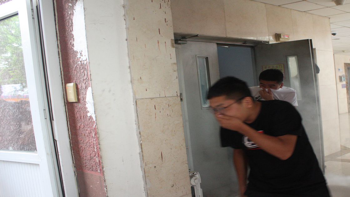 6月24日早上9:50分,冶金楼响起消防警报,浓烟在楼道里面冒出,从负一层至十二层的师生在每层消防疏散员的引导下,从步行楼梯有序疏散,集合在冶金楼南侧的车间广场,观看实验室危险化学品泄漏的应急演习,学习应急事故处理知识。