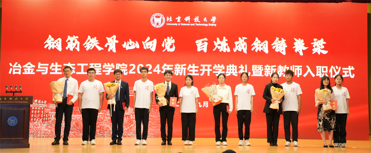 钢筋铁骨心向党,百炼成钢铸脊梁。9月20日晚7:30,122大阳城集团2024年新生开学典礼暨新教师入职仪式如期举行。典礼主会场设在校本部教职工活动中心,分会场设在昌平创新园区,同时开通在线直播和互动平台。学校学生工作部副部长王斌,学院院长张建良,党委书记宗燕兵,副院长闫柏军、马保中、任英,党委副书记、副院长陈怡凌出席典礼。钢冶系于会香、理化系张梅、有色系赵洪亮、生态系刘晓明、储能系于然波、退休教师郭汉杰等老师与新生班主任及各年级辅导员参加典礼。学院2024级全体新生457人、新入职教师6人全程参与。开学典礼和入职仪式由党委副书记、副院长康泰主持。